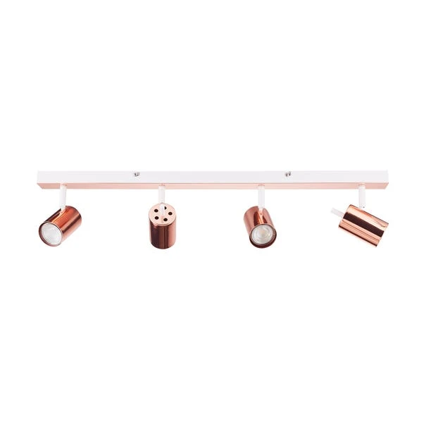 Brighten up your room with the stunning Carter 4 Light Gold Spotlight Bar. This modern contemporary inspired spotlight bar would suit a range of interiors. It features a matt black bar base with four adjustable heads for a contrasting look. This stunning spotlight is dimmable compatible and perfect for adding a contemporary touch to your home, with matching family items available to help coordinate your home.
