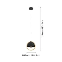 The Callow pendant light has a round lampshade with a black steel finish surrounded by a natural wood ring. The shade suspends on a black textile cable from a metal canopy of the same colour. With its minimalist yet distinctive design, the pendant light provides stylish lighting for any modern interior, whether in the living room or above the dining room table.