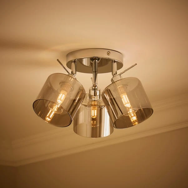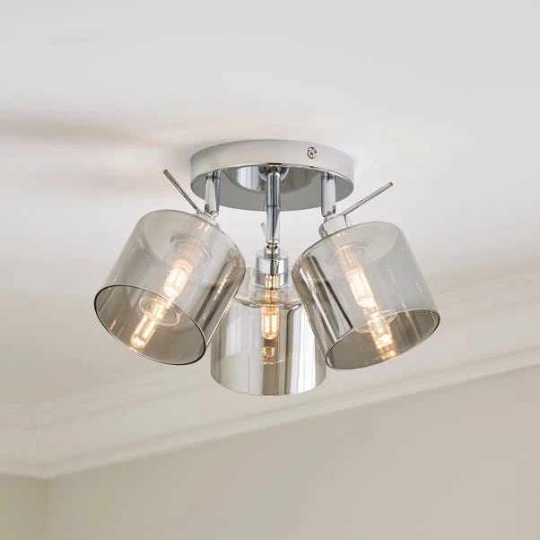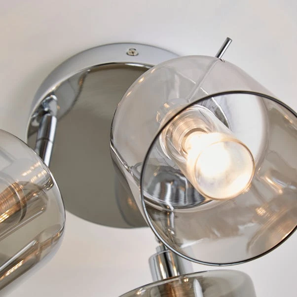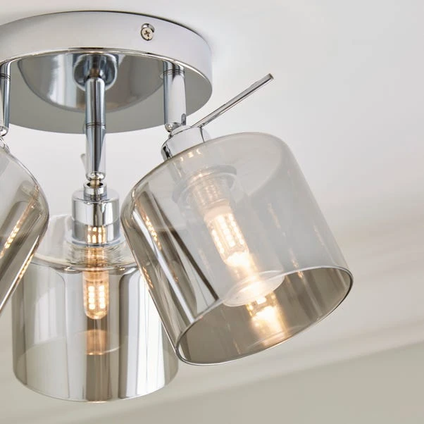 Featuring a modern luxe design, this light is ideal for adding a touch of contemporary style to your bathroom. With adjustable heads, you can manoeuvre this light to suit your overall style. With a chrome plated finish and three smoked glass shades, this spot light is not only stylish and functional, but also modern. This light is dimmable compatible and is perfect for use with G9 LED lamps.