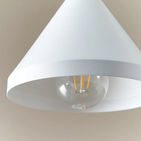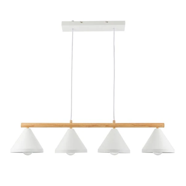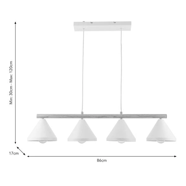 Perfect for making a statement, the Gino Scandi 4 Light Adjustable Diner Ceiling Light boasts white, conical-shaped metal shades beautifully complemented by a wood-effect finish. With its adjustable height allowing for customised ambience, its linear design guarantees beautiful placement above dining tables.