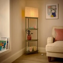 Add a luxurious touch to your home with the Hotel Harrogate Integrated LED Floor Lamp. Featuring a beautiful gold rectangular hoop design, with a crystal effect LED integrated within the light, finished with a striking gold base and a stylish white shade. The Hotel Harrogate Integrated LED Floor Lamp is the perfect piece for adding elegance to your décor, pair with available matching family items to complete the look.