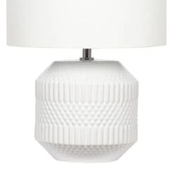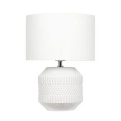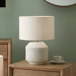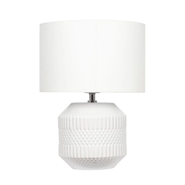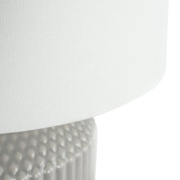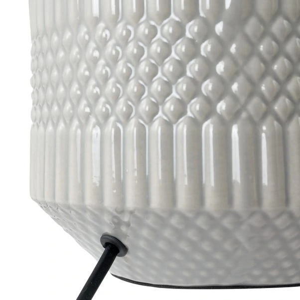 Do you have a smaller table top that needs a lighter touch? Illuminate your space with this Meribel table lamp. Made with a geo textured ceramic lamp base in a choice of colour options, it is sure to suit your home decor style.