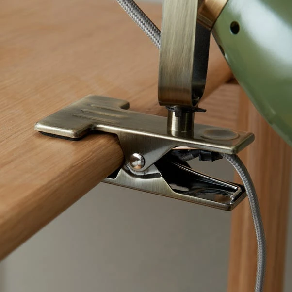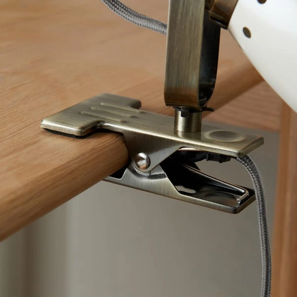 Supplied with a handy in-line switch and a clip-on feature for placement versatility, this industrial-inspired plug-in desk or table light offers an adjustable head for tailored ambience.