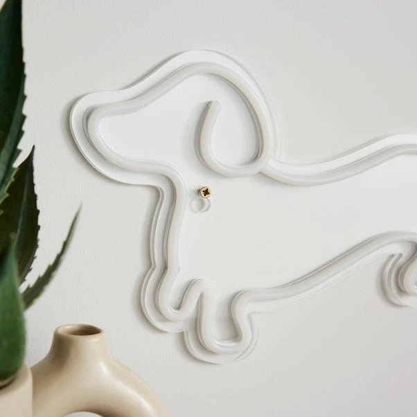 Calling all Sausage Dog lovers! The Sausage Dog Neon Sign is the new light of your life. Crafted in a playful dog shape, its soft LED strip emits a warm white glow, creating a delightful ambience in any room. Easy to hang or place, this sign is the ideal companion for dog enthusiasts.