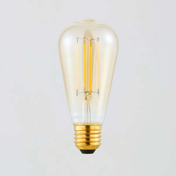 This extra warm white bulb has an amber colourway for a distinctive look that will complement an array of home decors. Not only is it a decorative feature light bulb, but it also has low energy consumption and is dimmable, making it both practical and ideal for mood lighting.