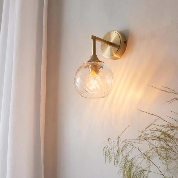 Discover the elegance of the Vogue Lighting Asher Wall Light. Its twisted glass shade and antique brass finish make it ideal for modern or classic interiors. With an SES E14 cap type and standard (GLS) bulb requirement, it enhances any space with a touch of sophistication.