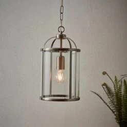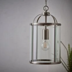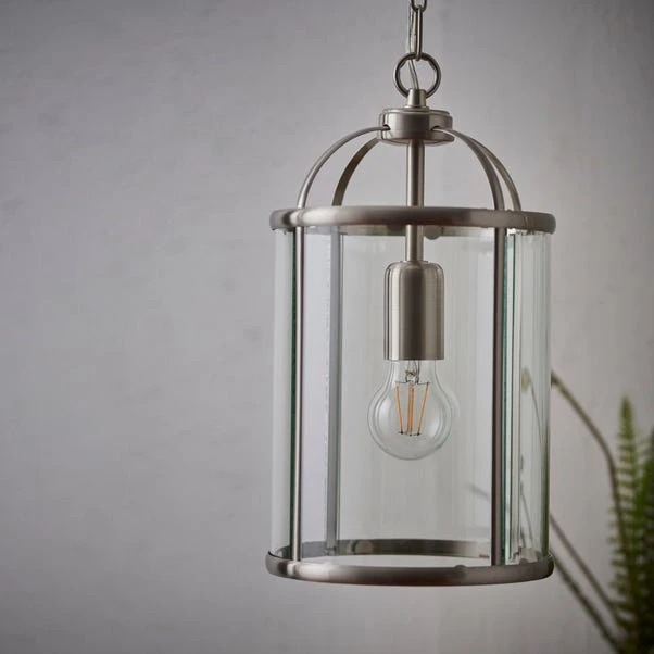Beautifully crafted with a choice of antique brass and silver finishes, this stunning Vogue Lambeth 1 Light Pendant features an adjustable drop combined with a metal framework and clear glass panels. This light is compatible with a dimmer switch, suitable for use with LED bulbs, with matching items available to complement an array of home decors.